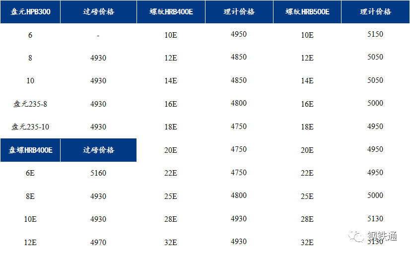 2、盘螺平稳:Φ8-10mmHRB400E盘螺指导价格4940元,6mm加价500元/吨。