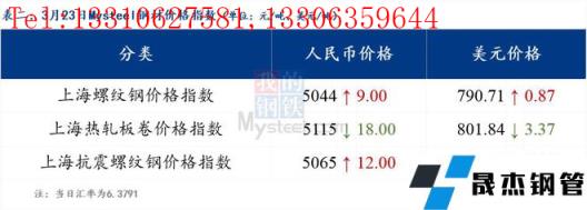 3月23日普钢绝对价格指数变化:综合指数5226.68,下跌0.77;螺纹钢指数4970.39,上涨1.17;线材指数5303.48,上涨2.01;热轧板卷指数5161.14,下跌8.64;冷轧板卷指数5566.4,下跌2.83;中厚板指数5178.37,下跌4.58。