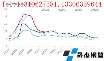 近期石家庄地区建筑厚壁无缝钢管价格跌幅相对较大,主要是由于前期价格持续坚挺,近期受到周边市场低价的冲击,以及期货持续偏弱运行,出货情况不理解,因此商家心态略显悲观,价格下跌较快,当前价格和北京的价差近期持续收窄。三、资源供应仍相对偏少虽然近期无缝厚壁钢管厂家螺纹钢产能利用率达到今年以来的高点,但与前几年同期水平相比,仍处于偏低水平,尤其是疫情的反复,以及部分无缝厚壁钢管厂家螺纹、板材间的铁水切换等因素影响,后期产量增加不会很大,因此供给压力不会太大。